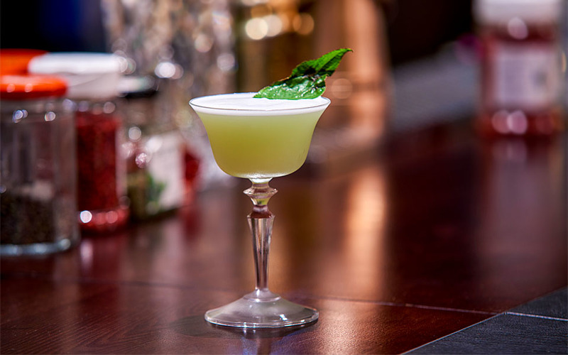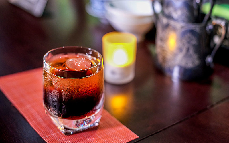 Лондонский сухой джин, домашний табачный бурбон, херес педро хименес оттенены травяным Амаро.