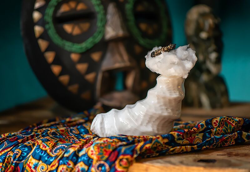 Мы привыкли видеть гусеницу в бутылках с мескалем, здесь же насекомое (искусственное) выступает в качестве гарниша к коктейлю на текиле. Для большей крепости и цитрусовых нот добавь граппу и апероль.