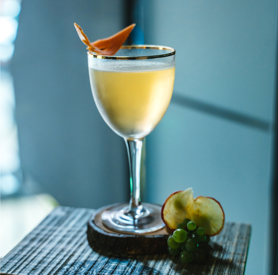 Состав: текила Patron Silver (45 мл), бенедиктин (15 мл), сахарный сироп (8 мл), сухой яблочный сидр (8 мл).