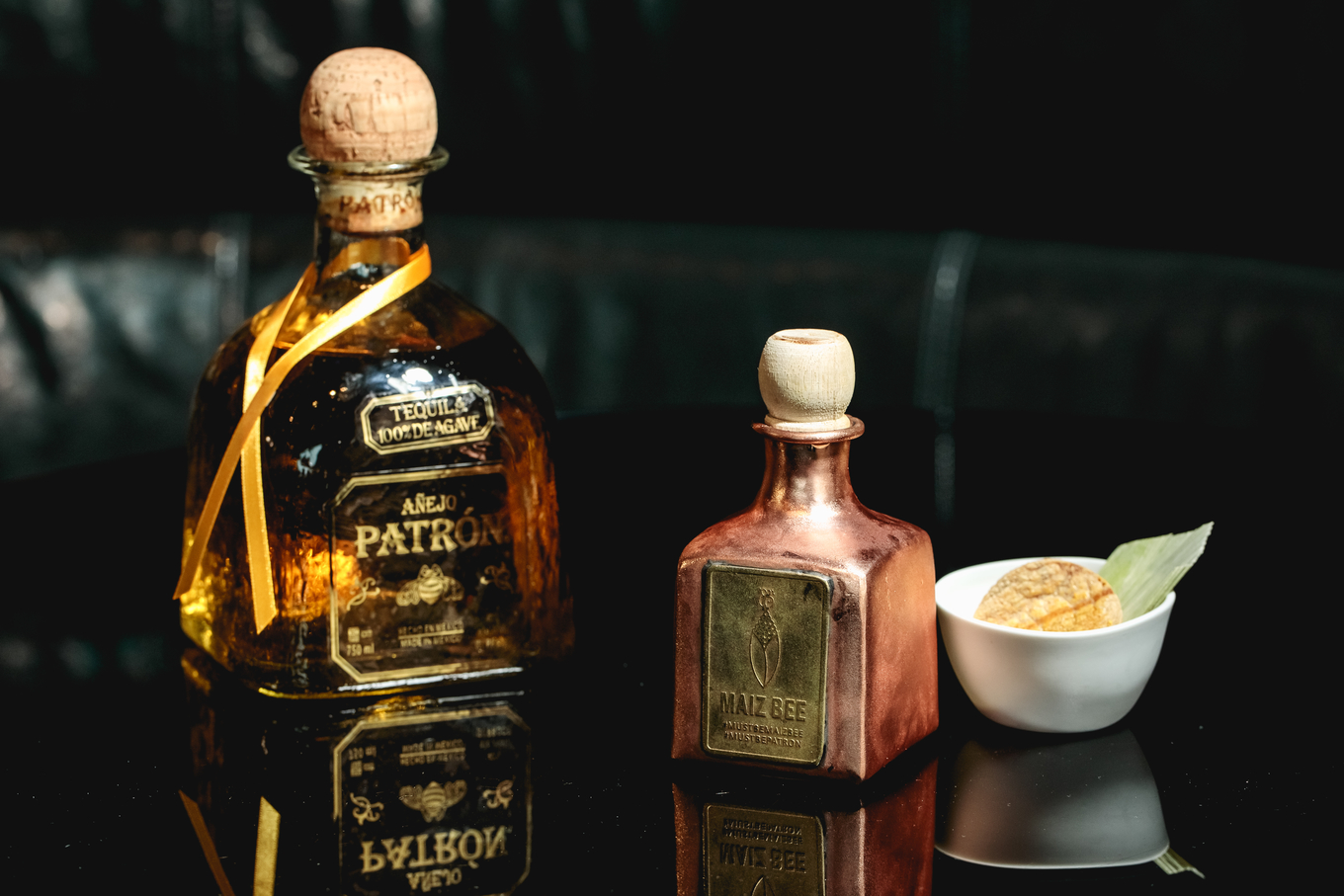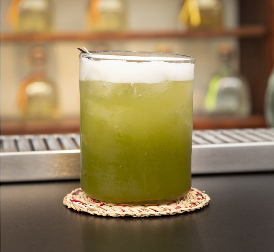 Состав: текила Patron Anejo (45 мл), пряный вермут (25 мл), кукурузное пюре (30 мл), лимонный сок (25 мл), сироп агавы с пчелиной пыльцой (15 мл), масло авокадо (3 капли).