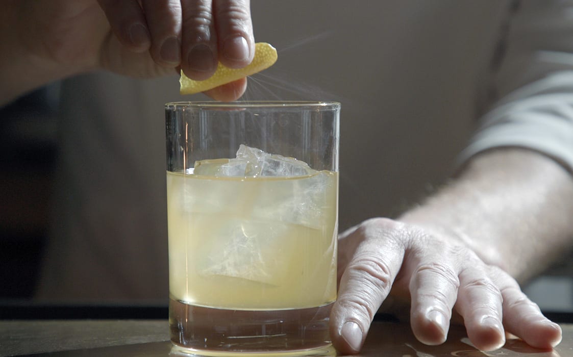 Все ингредиенты нужно смешать в стакане с добавлением льда, а затем — процедить в рокс со льдом и украсить лимонной цедрой.