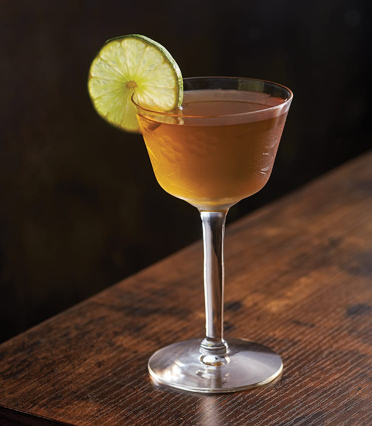 Все ингредиенты нужно смешать в стакане со льдом, а затем процедить в охлажденный бокал купе и украсить кружком лайма.