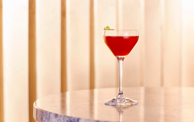 - TOT Negroni: джин Porter's Tropical Old Tom, вермут Lyaness Tea-mooth, семена томата и ежевики, ликер Campari