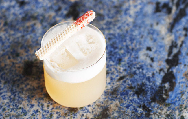 - Continental Sour: японский виски Toki, сироп Golden Levain, мускусная дыня, кокос, грейпфрут