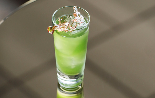 - Piña Leaf Highball: водка Grey Goose, Purple Pineapple, крыжовник, подсоленные листья ананаса, содовая