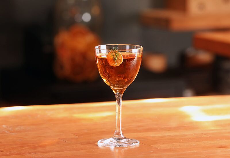 Если "Маргарита" готовится на текиле, то "Не Маргарита" – на основе домашнего ванильного мескаля. Мандариновый уксус и сироп агавы создают кисло-фруктовый микс.