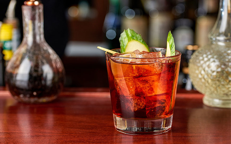 Ржаной виски, красный вермут и апероль с добавлением бехеровки и абсента.