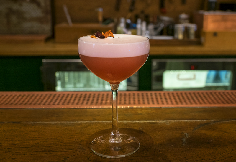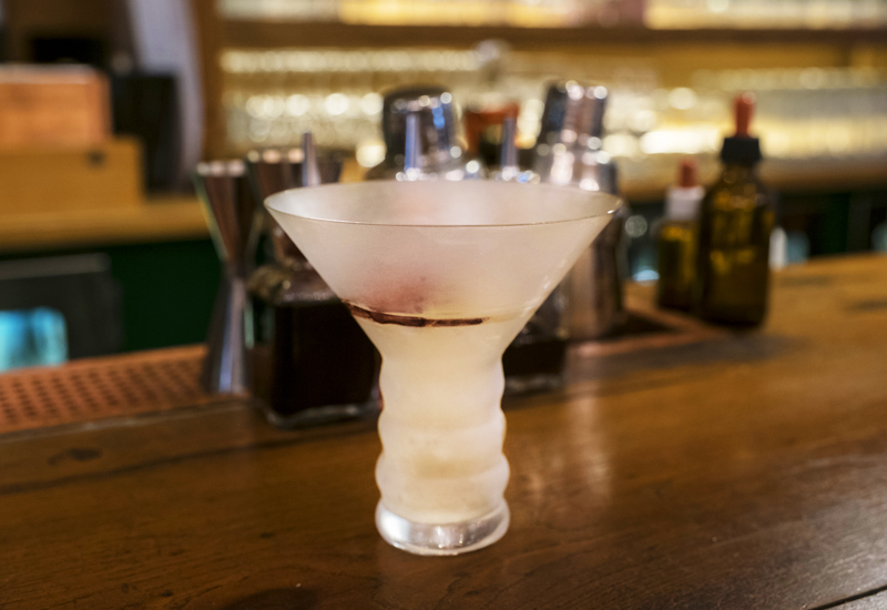 Твист Никоса Бакулиса на знаменитый коктейль Драй мартини выглядит точно как классика, но по сути совсем иной. Вместо джина – перечная текила, роль вермута досталась хересу, оливки уступили место овощным чипсам.