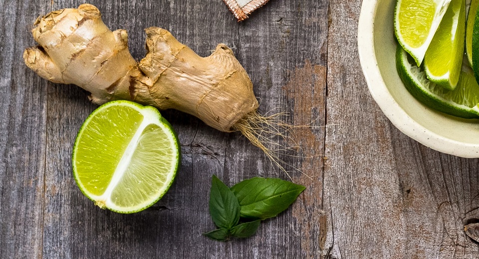 Измельчите 2 лаймовые цедры и нарежьте 50 гр корня имбиря. Добавьте ингредиенты в смесь.
