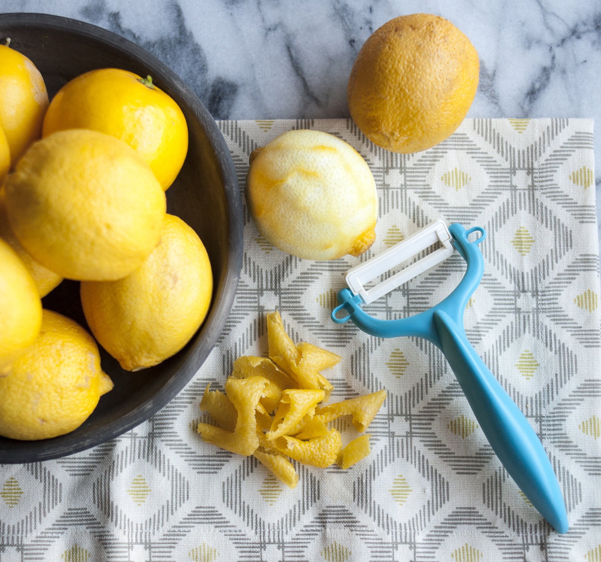 Подготовь все необходимое: начисти лимонную цедру (12 г) и достань с полки листовой чай Earl Grey (30 г).