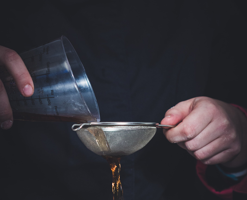 Дважды отфильтруй ром от масла через мелкое сито с марлей. Готово! Теперь можно приступать к приготовлению коктейля.
