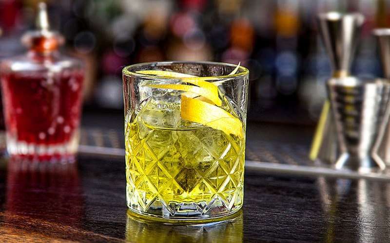 Шотландский виски, сухой вермут, яблочный ликер зеленый и гентиана.