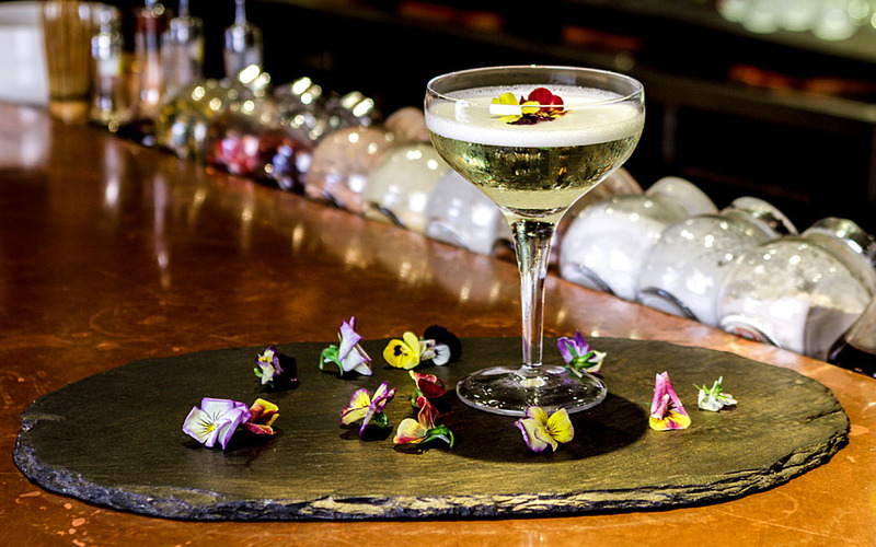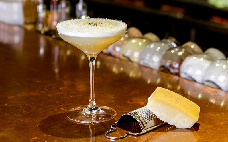 Домашняя обогащённая маслом какао Зубровка, бехеровка, коричневый какао ликер, сахарный сироп и лаймовый сок с добавлением тоника.