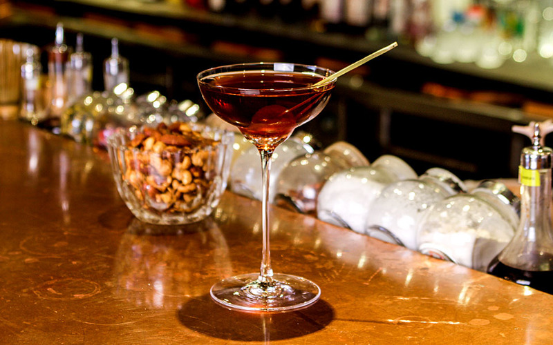 Японский виски, бурбон двойной выдержки и красный вермут с добавлением ангостуры биттер.