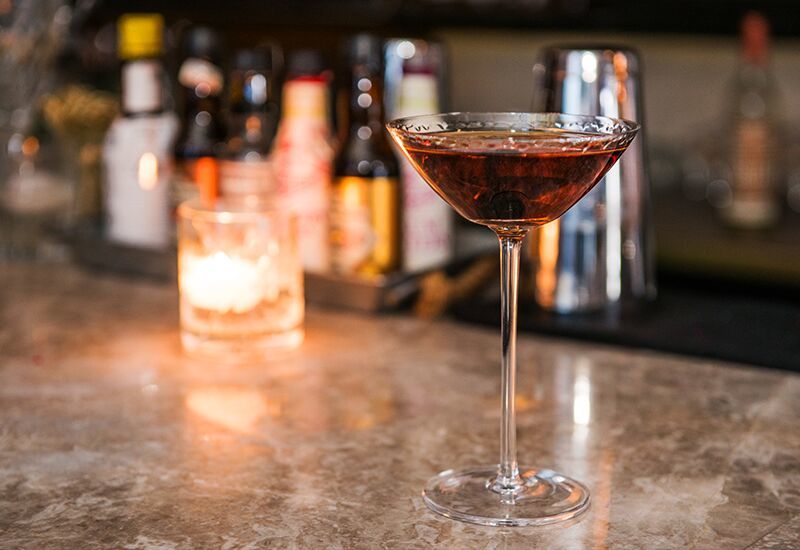 Коктейль производит впечатление утонченного напитка: то ли благодаря коктейльному бокалу, то ли так действует домашний ликер на роме и изюме.