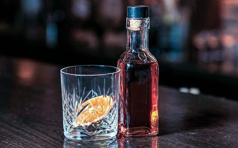 Домашний бурбон на масале, шоколадный биттер и сироп корицы.