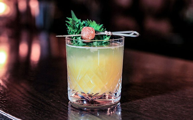 Шотландский виски, домашняя водка с чили, домашний мисо сироп и лимонный сок.
