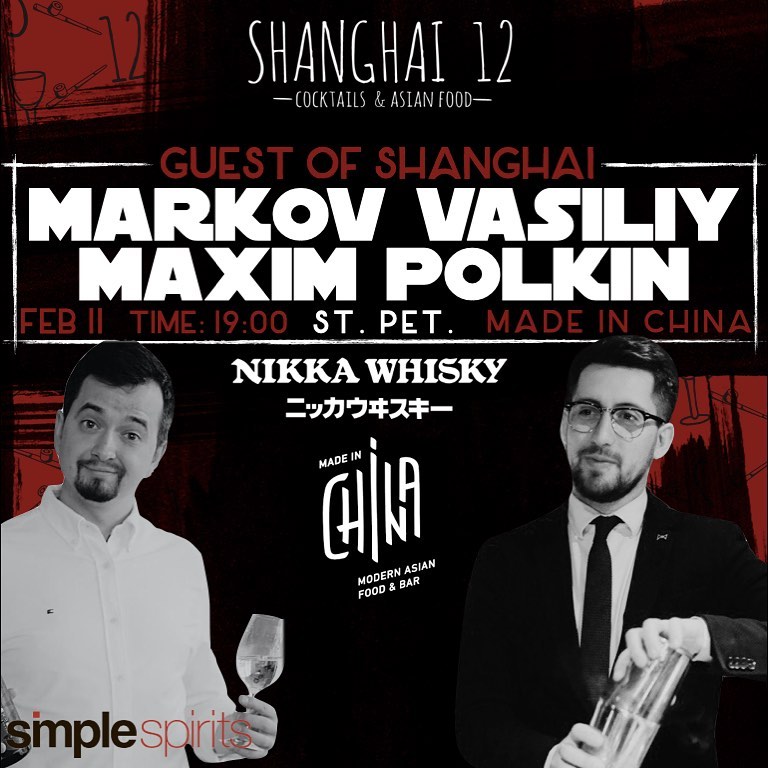 Барную стойку ростовского Shanghai 12 займут эксперт компании Simple Spirits Максим Полкин и шеф-бармен питерского Made in China Василий Марков. Ребята будут готовить коктейли на японских спиртах и саке.