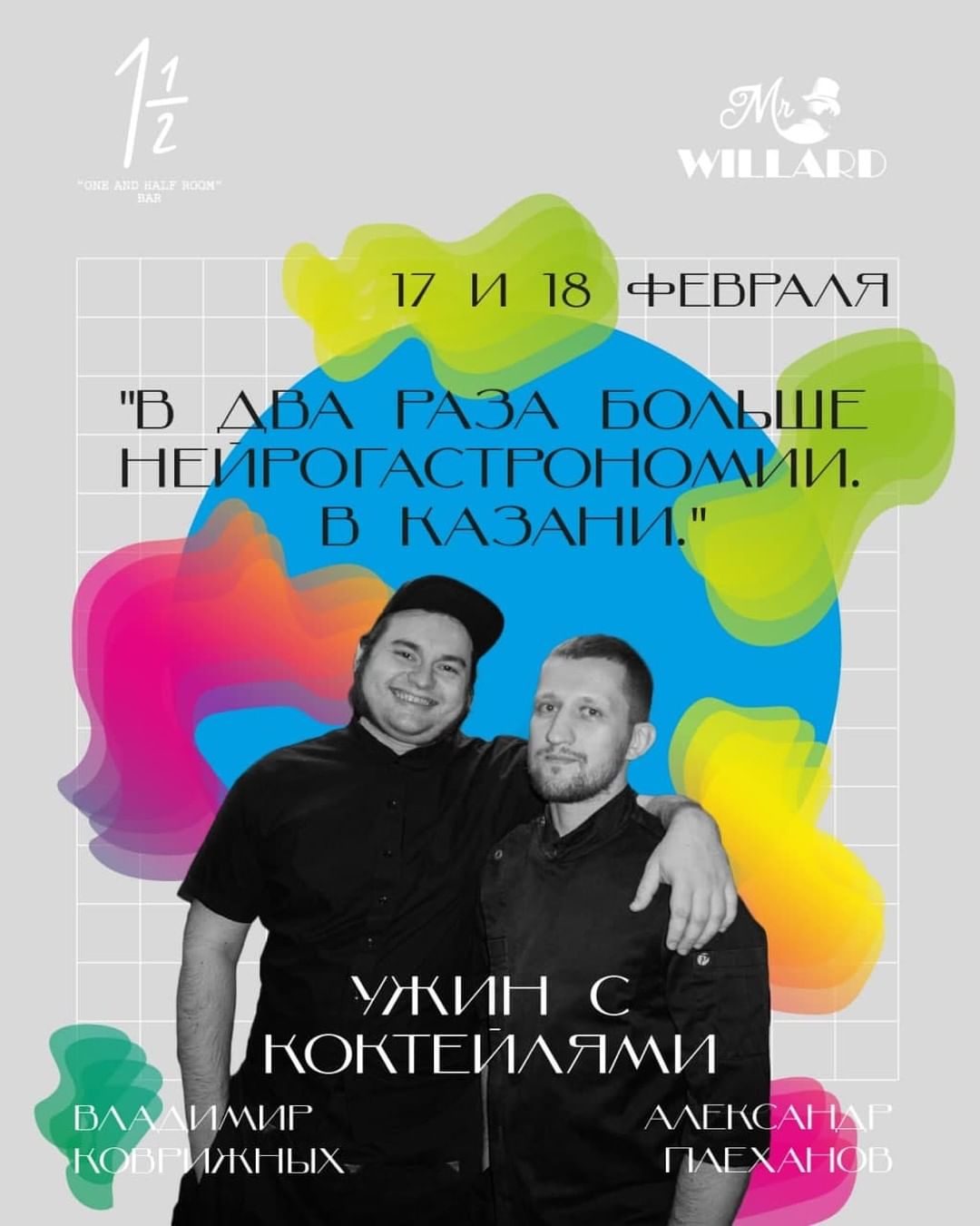 Бармен из «Полторы комнаты» Владимир Коврижных и шеф-повар питерского заведения Александр Плеханов устроят в Mr. Willard двухдневный коктейльный ужин. На него нужно приобрести билет, написав ребятам в директ.