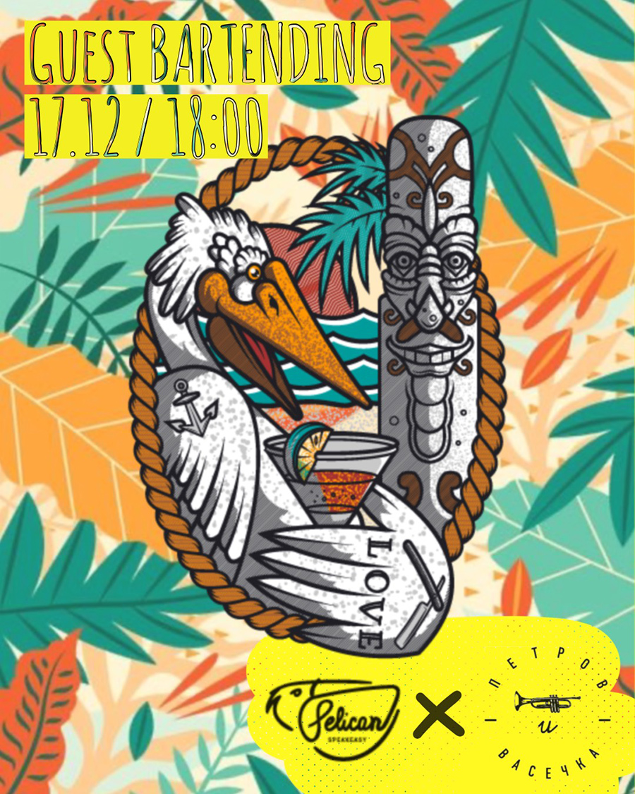 Ребята из коломенского Pelicanspeakeasy встанут за стойку московского бара «Петров & Васечка» и приготовят несколько авторских коктейлей: Nutella Milk Punch (водка на нутелле, лесной орех, апельсин, ореховое молоко), My Thai (два вида рома, ананас, лемонграсс, корица, грейпфрут, лайм), Pisco Ti Punch (писко на какао масле, сироп из ферментированного винограда, лайм) и Altos de Chavon (ром на ананасе, маракуйя, херес, биттер).