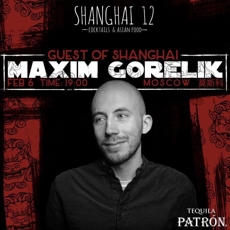 Шеф-бармен московской сети Lucky Group Максим Горелик приедет в Shanghai 12 и весь вечер будет готовить три коктейля на основе текилы: