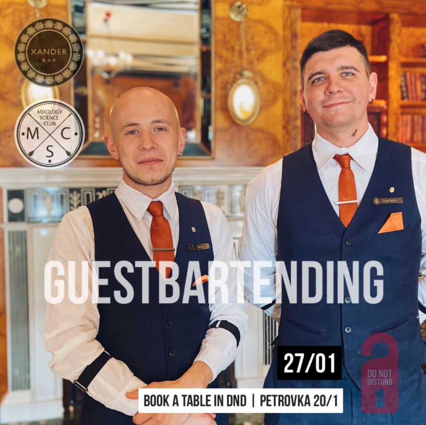 Тарас Завальнюк и Станислав Кузин, бартендеры питерского Xander Bar, заглянут в Do Not Disturb и представят публике авторские коктейли-хиты.