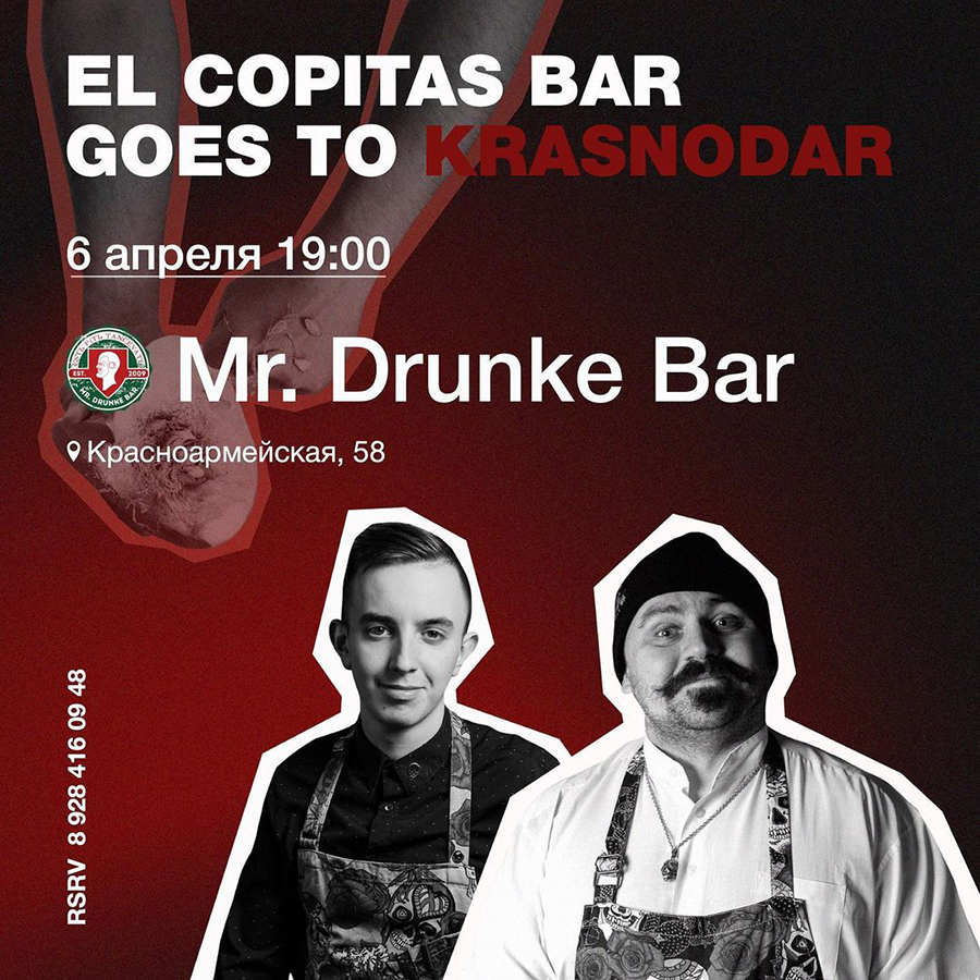 Николай Киселев и Андрей Коробков из титулованного El Copitas Bar встанут за стойку краснодарского Mr. Drunke Bar и будут готовить для гостей авторские коктейли.