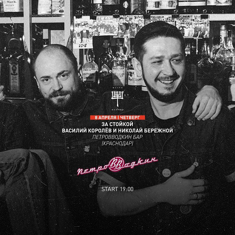 Василий Королев и Николай Бережной из краснодарского бара «ПетроВВодкин» приедут с гастролями в Екатеринбург. Ребята встанут за стойку «Шалом Шанхай» и приготовят несколько авторских коктейлей на основе локальных ингредиентов и домашних заготовок.
