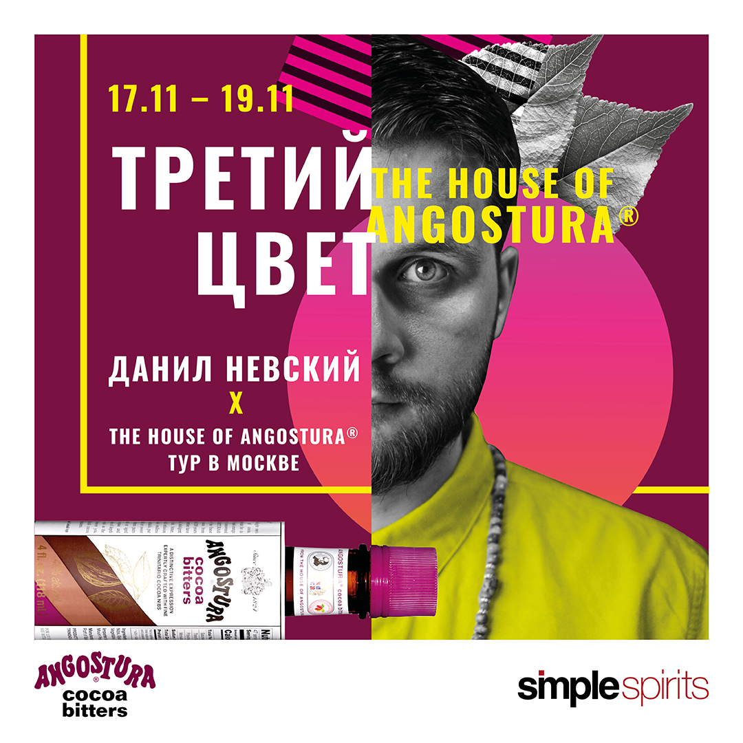 Данил Невский — бартендер, консультант, лектор и лидер проекта Indie Bartender — совместно с ANGOSTURA 17-19 ноября посетит несколько баров Москвы и представит новинку бренда ANGOSTURA Cocoa Bitters.