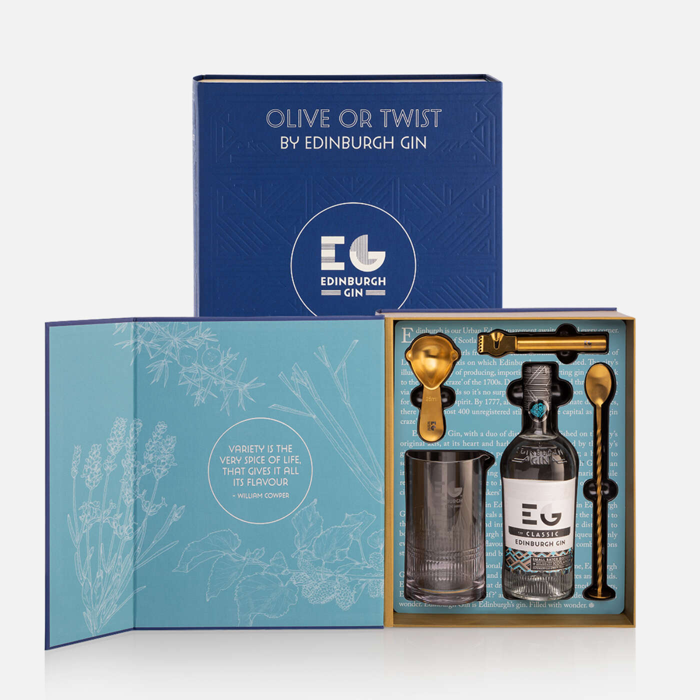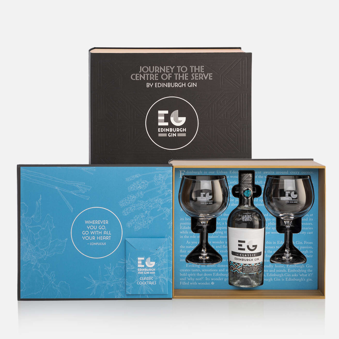 Состав: Edinburgh Gin Classic, буклет с рецептами коктейлей, два бокала.