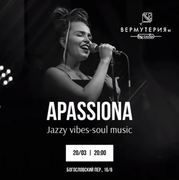 Гостей «Вермутерии RE» ожидает живой джазовый концерт от исполнительницы APASSIONA, а также авторские коктейли от бартендеров заведения.