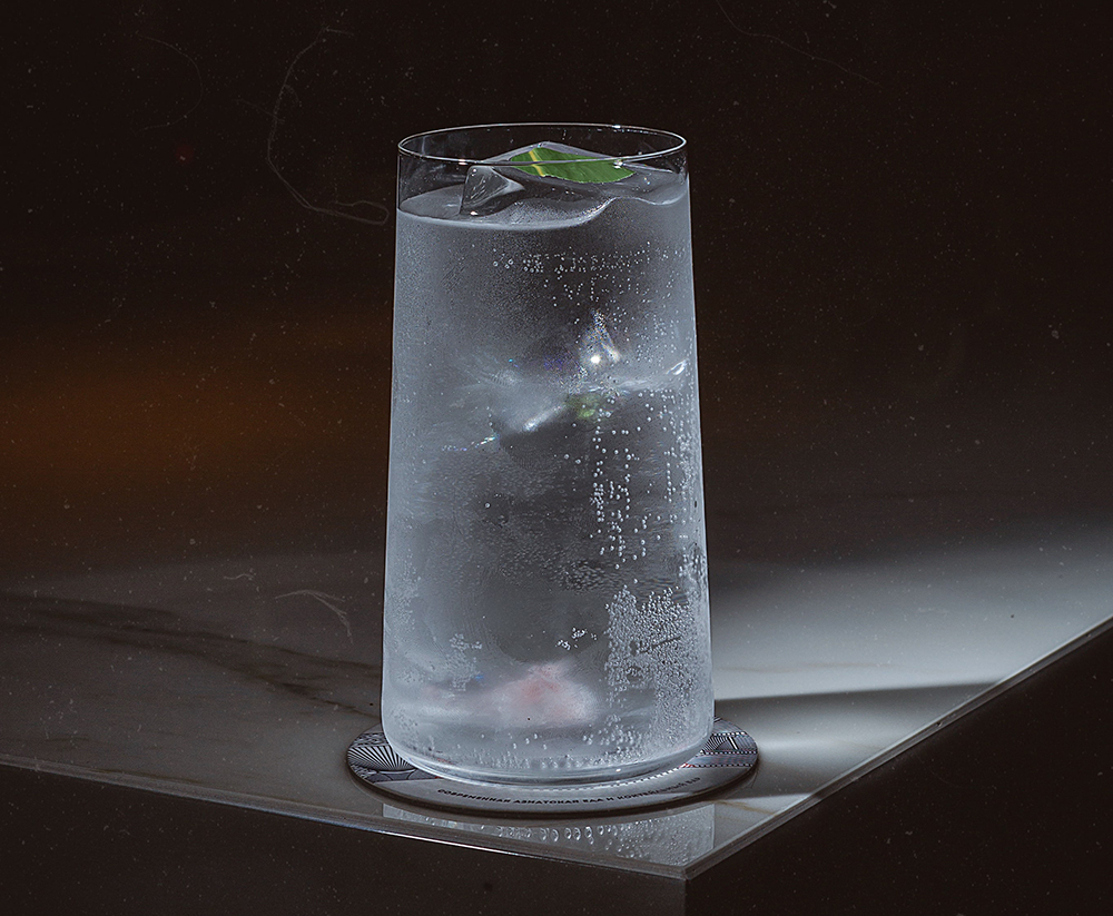 Джин на шисо, мятно-лаймовый кордиал, содовая.