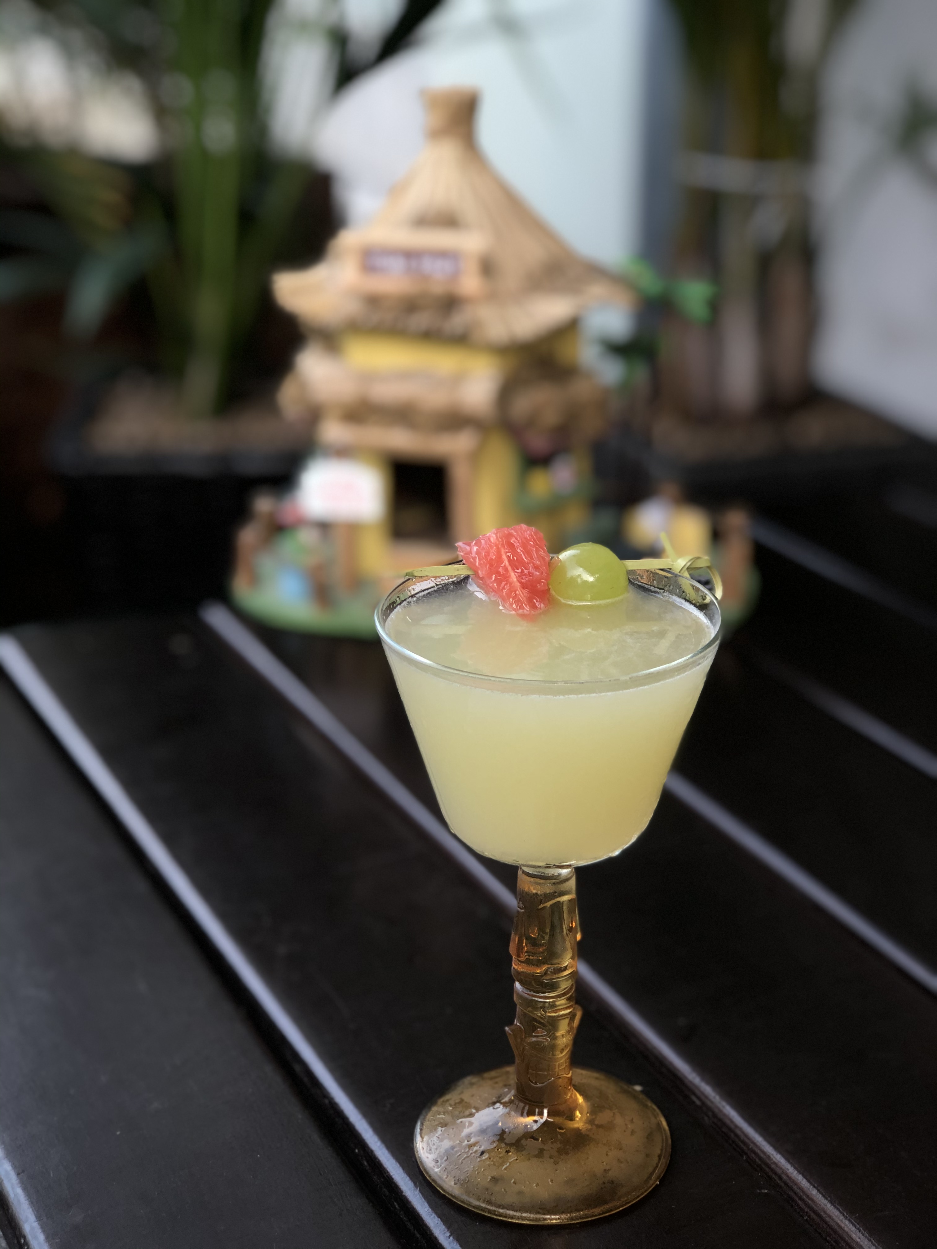 Black Hat Grog, настоянный на сушеном банане, кокосовый ликер, итальянский биттер, банан, домашний сироп пандан, лимонный сок.