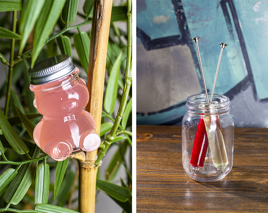 Также ребята из Neon Monkey добавили в барную карту пять новых шотов: «Мишка Харибо» (джин, арбуз, сироп бабл гам) и «Плазма блад» в медицинской шприце (грушевая водка, малина, апельсин), а также три напитка в маленьких фляжках: «Итальянский завтрак» (водка, просекко, фисташки), «Русский обед» (гречневый дистиллят, гранатовый соус, томат) и «Тайский ужин» (темный ром, манго, карри).