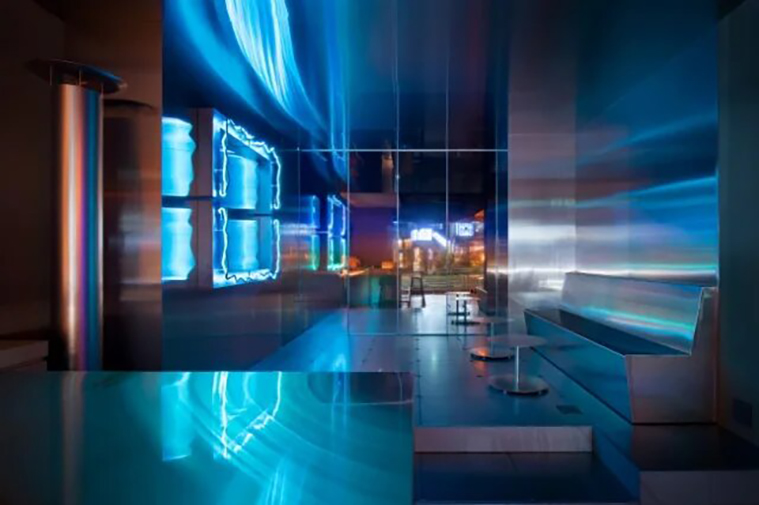 0% Non-Alcohol Experience оформлен в современном космическом стиле с обилием металла, неона и зеркальных поверхностей. Безалкогольную коктейльную карту для заведения разрабатывал «звездный» бартендер Шинко Гокан из Китая — основатель четырех популярных баров, которые входят в рейтинг The World's 50 Best Bars (Speak Low, Sober Company, The Odd Couple в Шанхае и The SG Club в Токио).