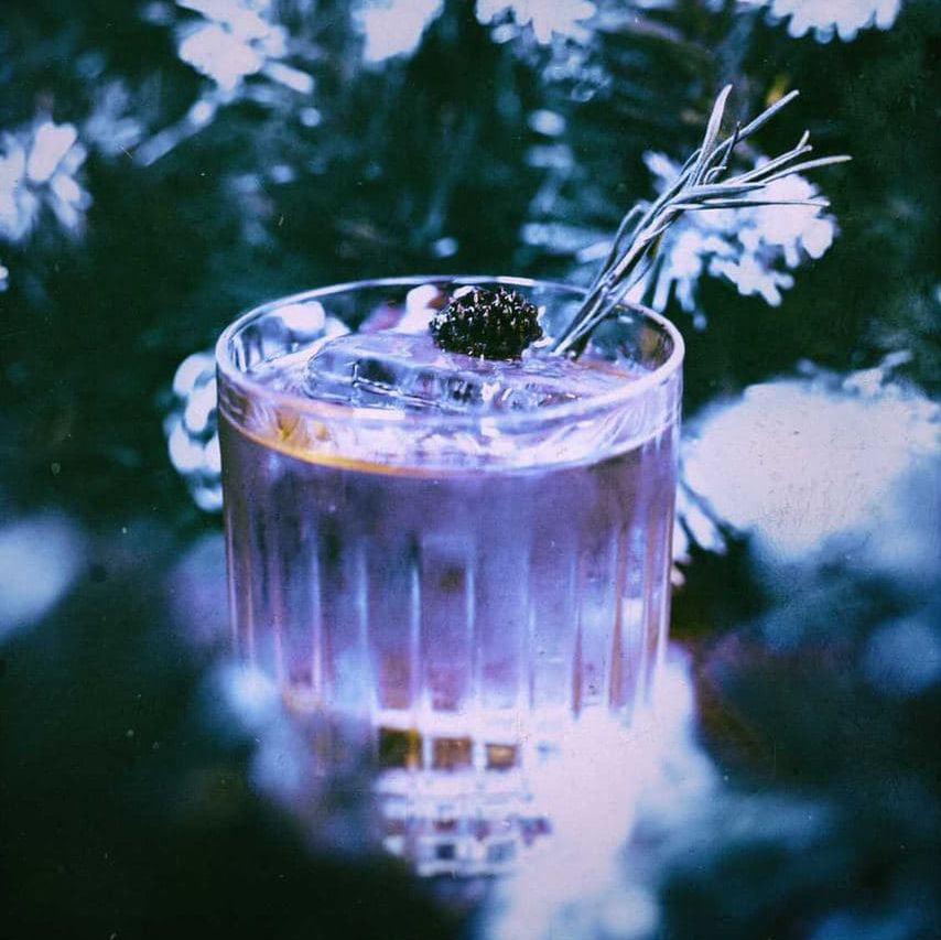 Водка, лилле блан, аперитив сьюз, соленая карамель, ореховый биттер, сосновая шишка, веточка розмарина