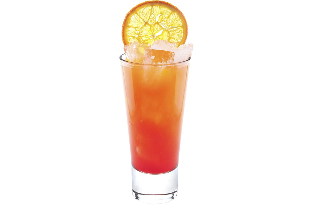 Серебряная текила, гренадин, апельсиновый сок, апельсин.