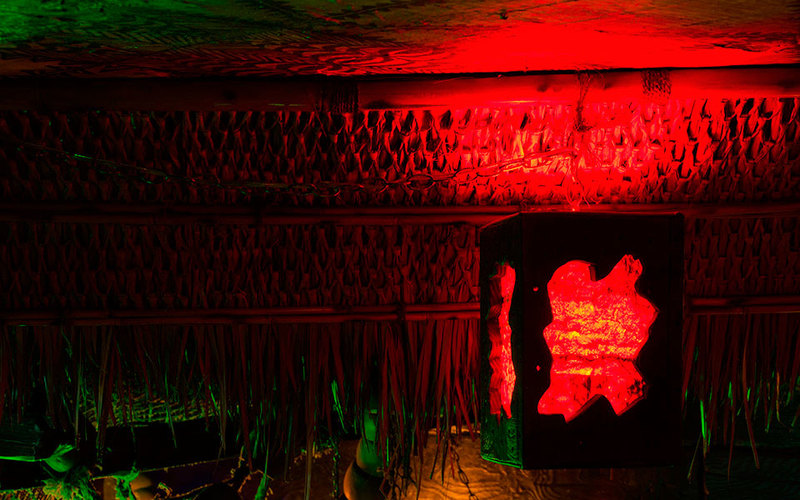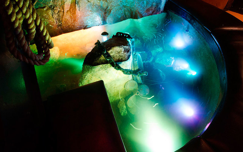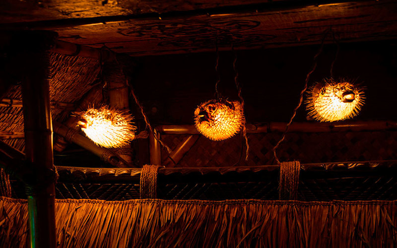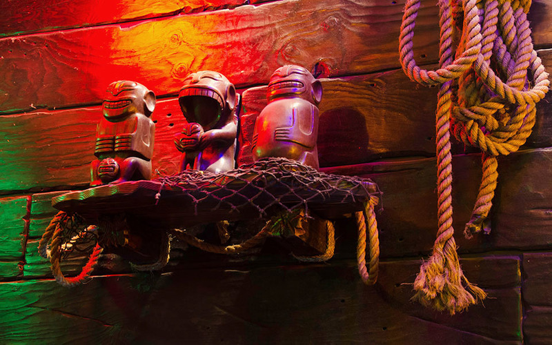 Интерьер украшен морским декором и артефактами тики — деревянными статуями, которые привезли с островов в Тихом океане американские солдаты, где служили во время Второй мировой войны.