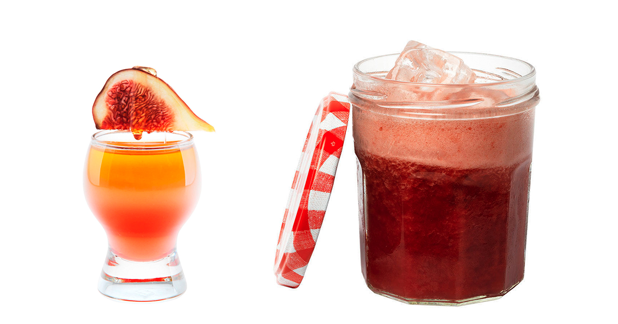 Сегодня стол украсят два интересных тропических коктейля: фруктовая Греческая смоковница с коньяком и ягодный Джем джекпот с американским виски. Естественно, в состав обоих напитков также входит инжир — ради него все и затевалось!