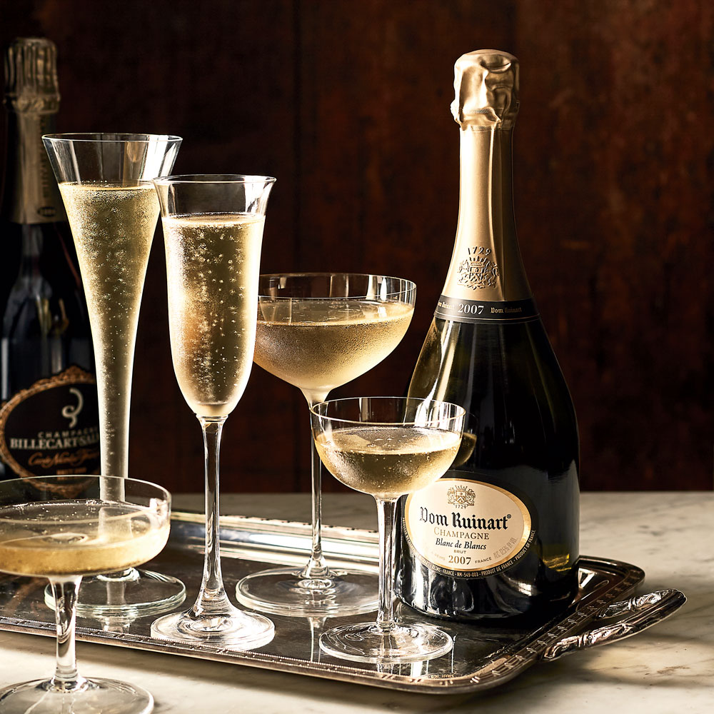Сухое шампанское подают хорошо охлажденным — примерно до 4-6 °С. Для поддержания температуры напитка часто используют ведерки со льдом, куда опускается бутылка. Напитки разливают в бокалы типа флейта, шале или тюльпан. Возможны и другие варианты — особенно, если речь о выдержанном шампанском. Попробуйте налить игристое в бокал для белого вина. У него значительно шире верхняя часть, чем у той же флейты, что помогает аромату лучше раскрыться.