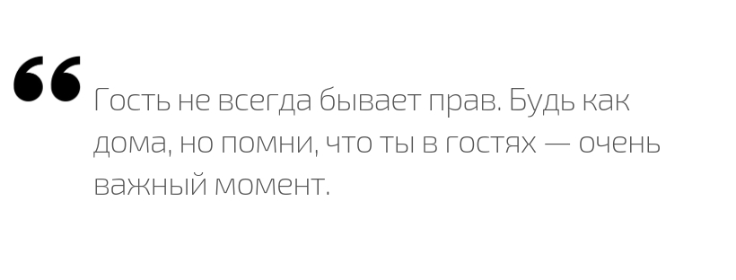 Мои правила взаимодействия с гостями в баре такие же, как и с гостями, которые приходят домой Одно из них — то, что гость не всегда бывает прав. Будь как дома, но помни, что ты в гостях — очень важный момент.