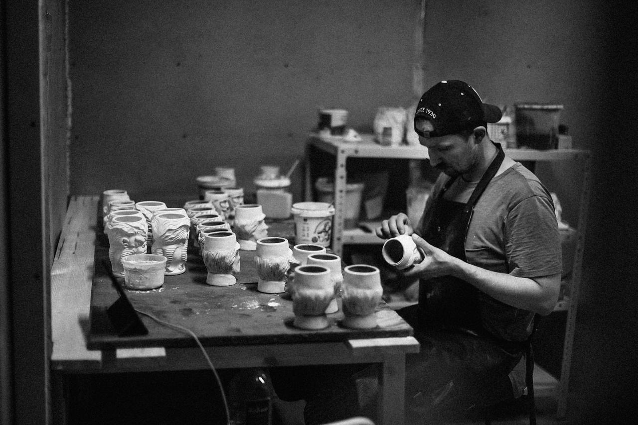 Первый опыт: в 2013 году я пришел на керамический завод, чтобы научиться делать изделия из глины. Там мне предложили сделать бокалы самому. Прикрепили ко мне человека, который должен был всё рассказать, договорились о первых бокалах в форме головы Дарта Вейдера. Для производства нужна была глина: сначала я брал местную (1 кг – 20 рублей), потом перешел на испанскую – в пять раз дороже, зато совсем другое качество.