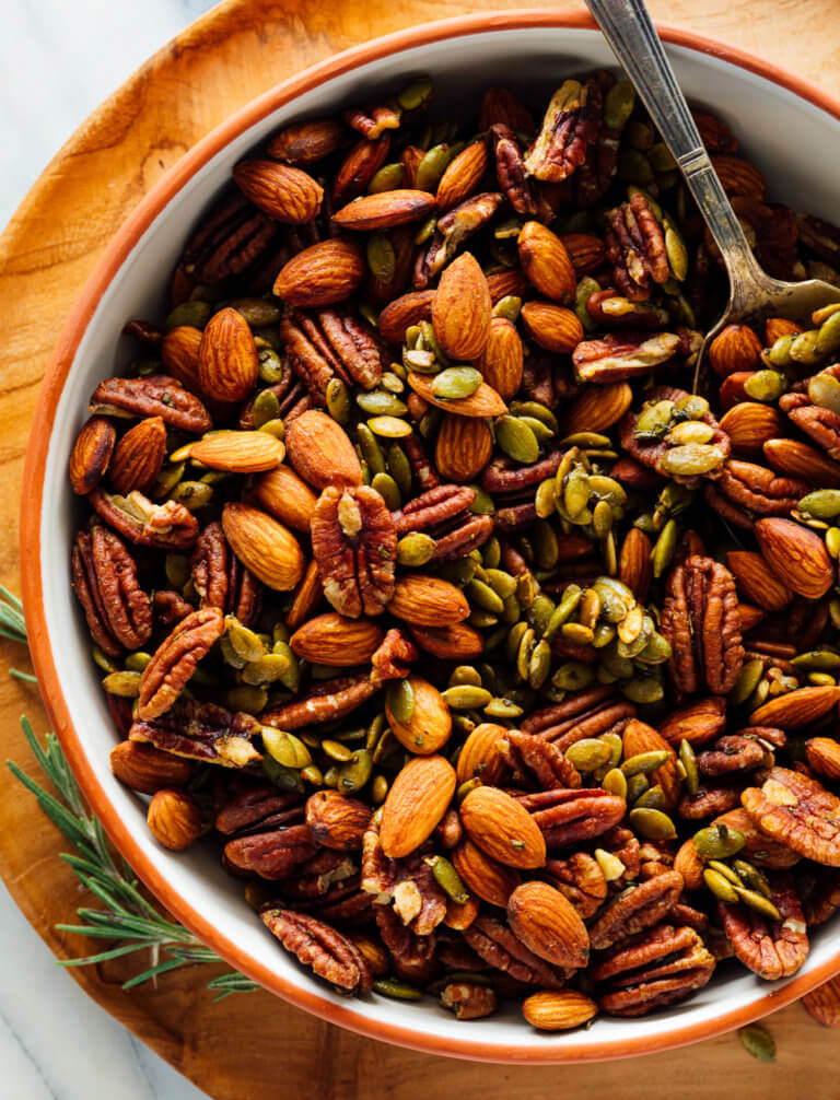 Если не переусердствовать со специями, эта закуска подойдет к любому типу виски. Сделаем орехи чуть пряными, а не жгуче острыми. Смесь по желанию можно дополнить тыквенными семечками.