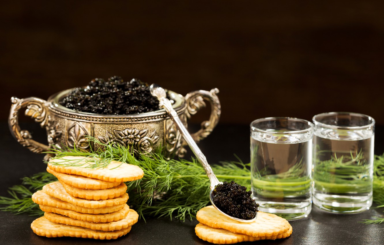 За счет своего соленого вкуса икра (черная и красная) действительно хорошо сочетается с водкой. Тот же «эффект», что от солений в качестве закуски. Любителям икры можно порекомендовать подать ее на бутербродах или в тарталетках. Сочетание с блинами – еще один популярный вариант закуски к водке.