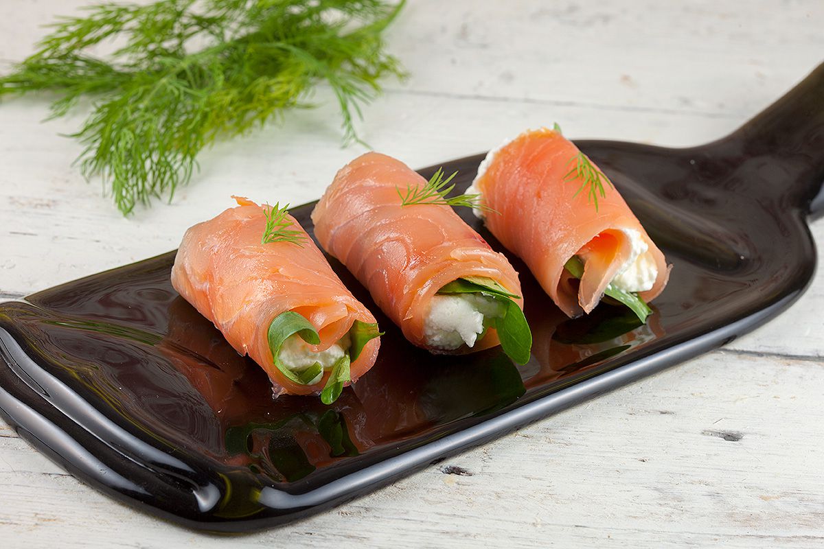 Мини-рулеты из семги и сыра